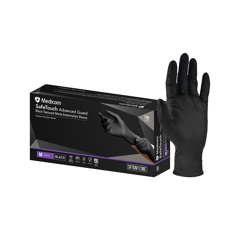 Nitrile Black Gloves – Latex-free, long-cuff, powder-free nitrile examination gloves. (S, M, L, XL)